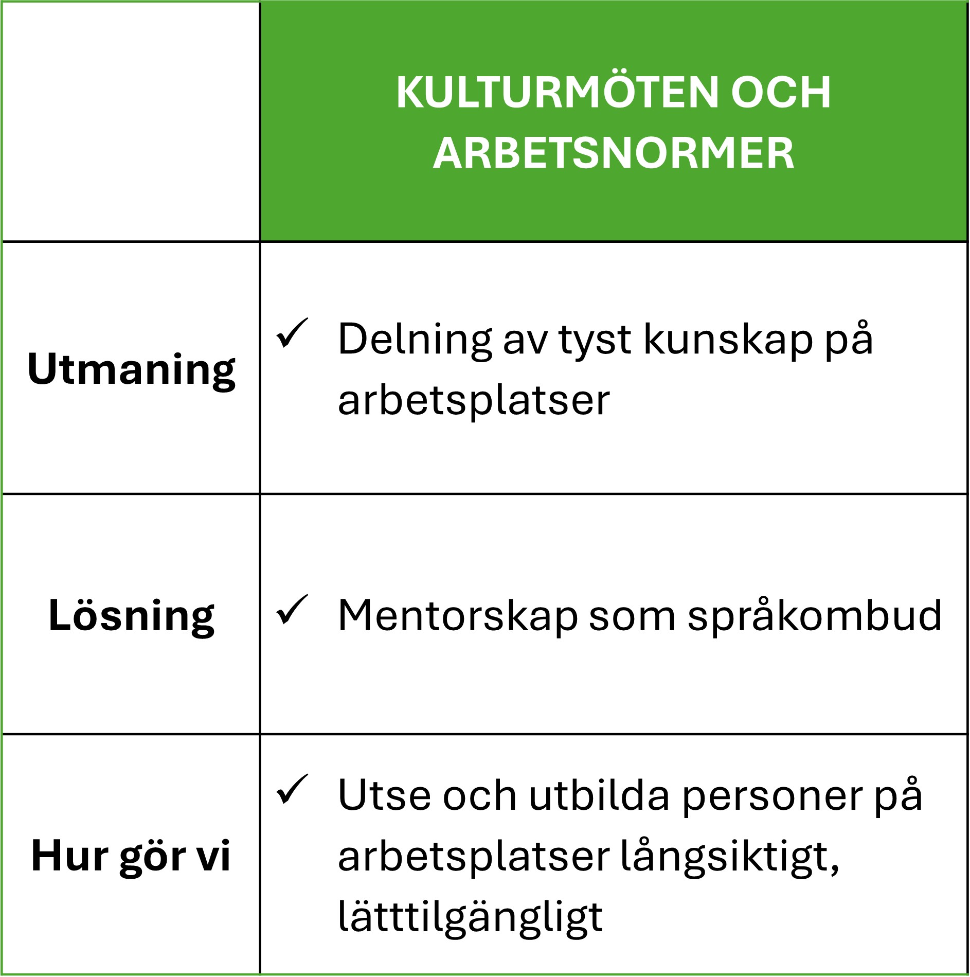 KULTURMÖTEN OCH ARBETSNORMER | LEDARSKAP & ANSVAR | REKRYTERING & UTVECKLINGSMÖJLIGHETER | KOMMUNIKATION & SPRÅK |